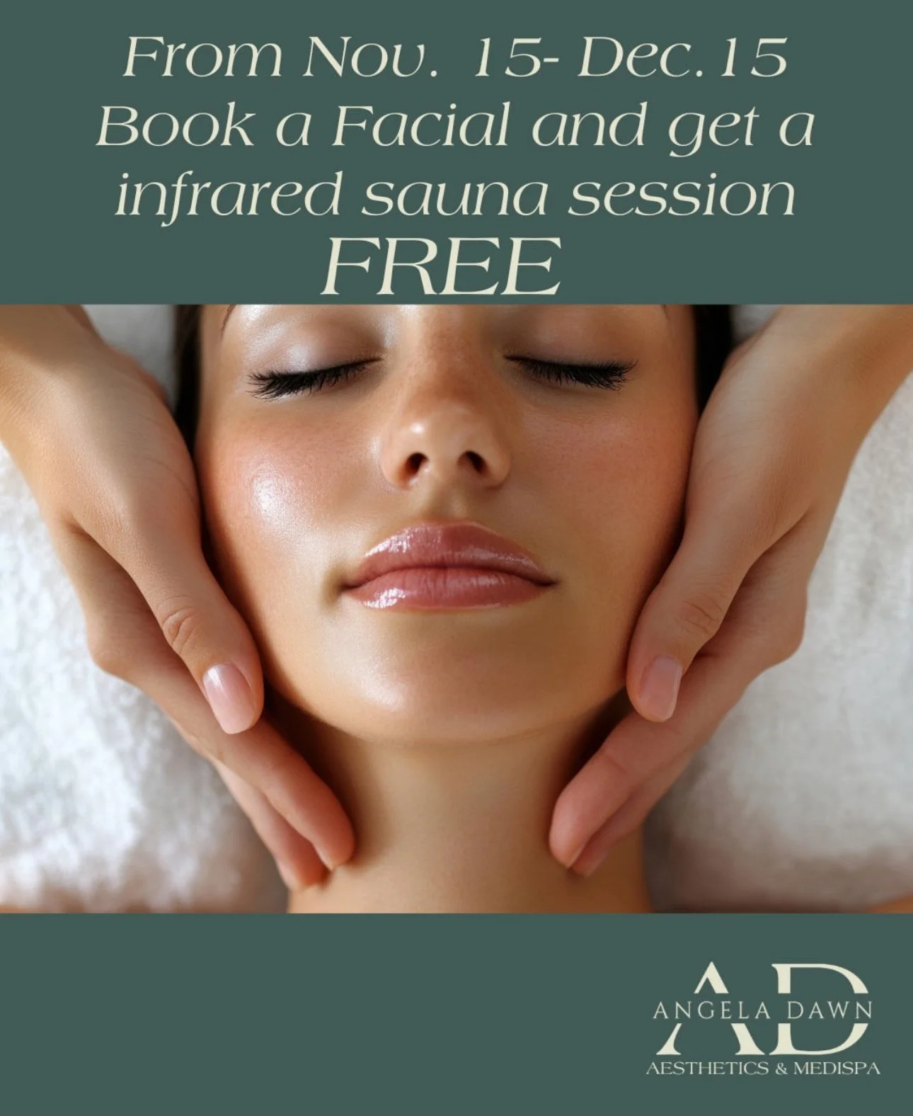 Book any facial between November 15th- December 15th and receive a complimentary Halotherapy Infrared Sauna session.